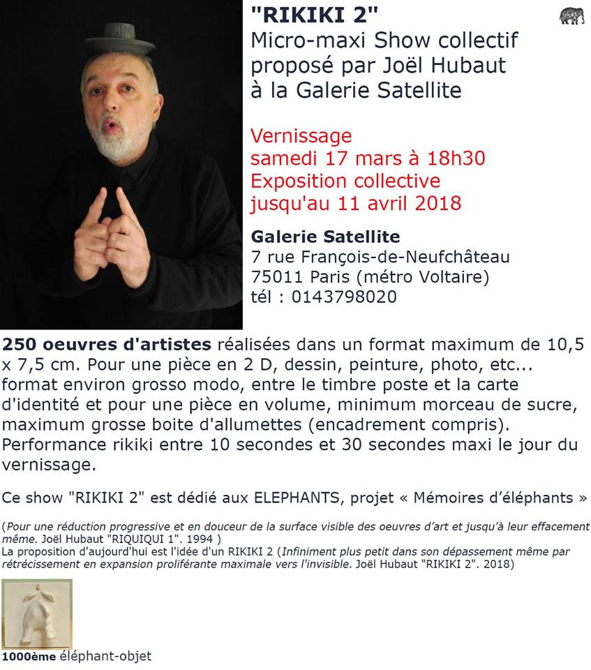 Production d’un objet photo, exposé sur la collective Rikiki 2, proposée par Joël Hubaut, à la Galerie Satellite 7 rue François de Neuf Château 75011 Paris.