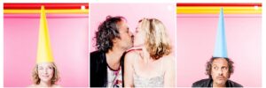 J’avais cette idée de trouver quelque chose de graphique qui soit présent dans chaque portrait et les cônes de couleurs sont apparus,